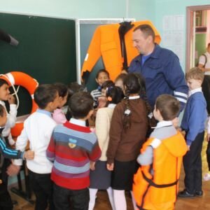 Спасатели службы спасения на воде в гостях у учеников “СОШ № 16”. Икрянинской район 26 апреля 2018