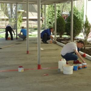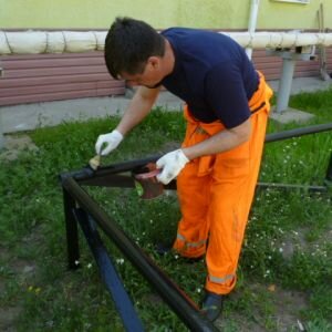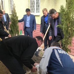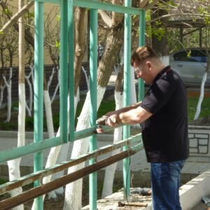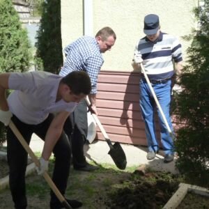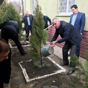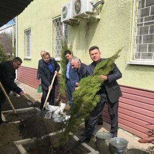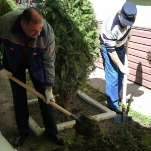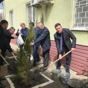 Руководящий состав ГКУ “Волгоспас” благоустраивает территорию учреждения. Апрель 2018